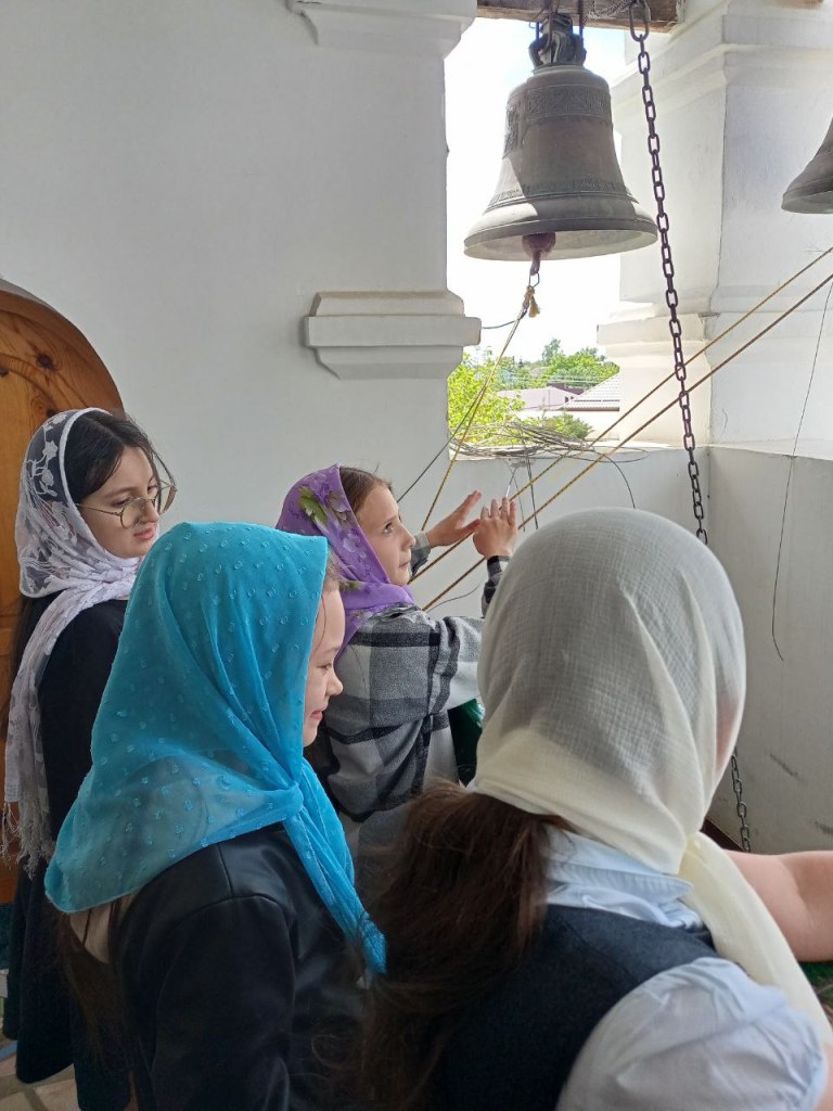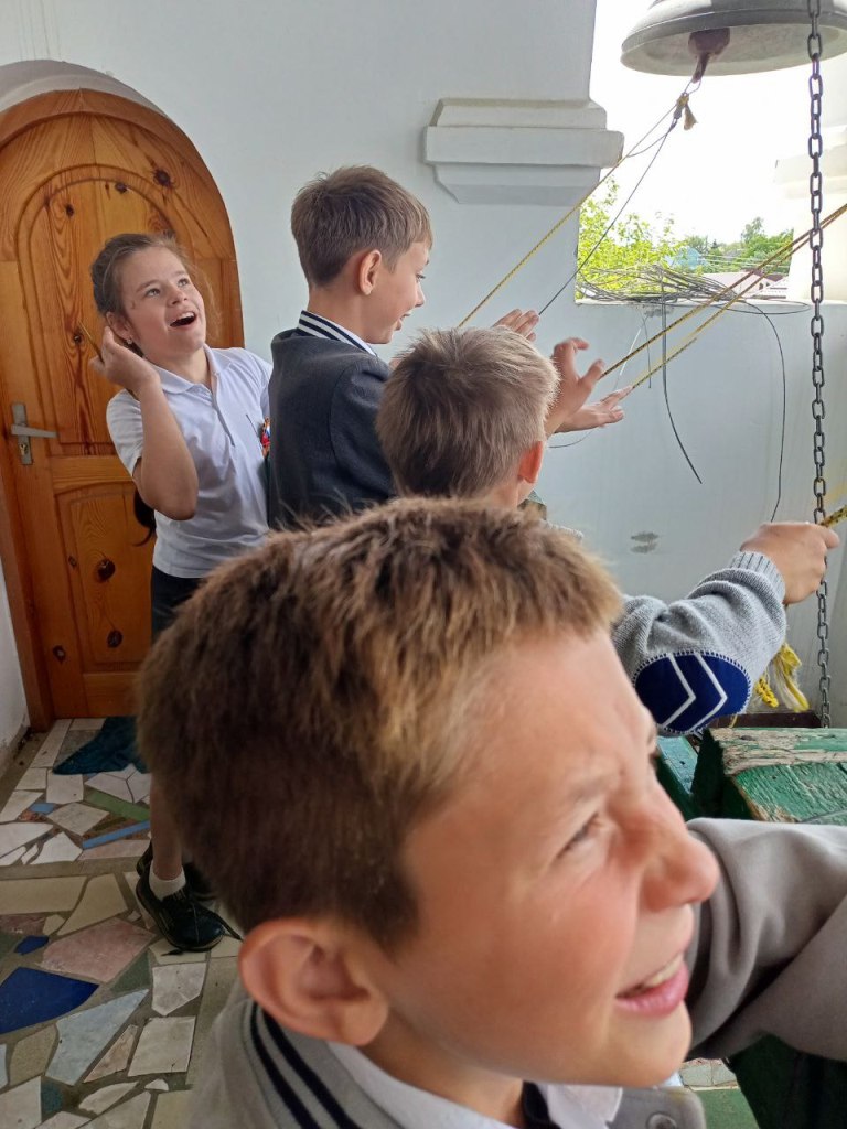 Дети узнали о празднике Светлого Воскресения Христова (Пасхи), о его традициях. Настоятель храма протоиерей Георгий Максимов радушно принял ребят и подарил всем пасхальные куличи. Все были исполнены Пасхальной радостью и смогли позвонить в колокола на колокольне!