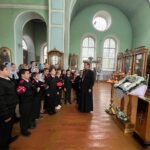 Ребята и преподаватели сначала помолись за Божественной Литургией, по окончании которой священник рассказал о жизни Пресвятой Богородицы.