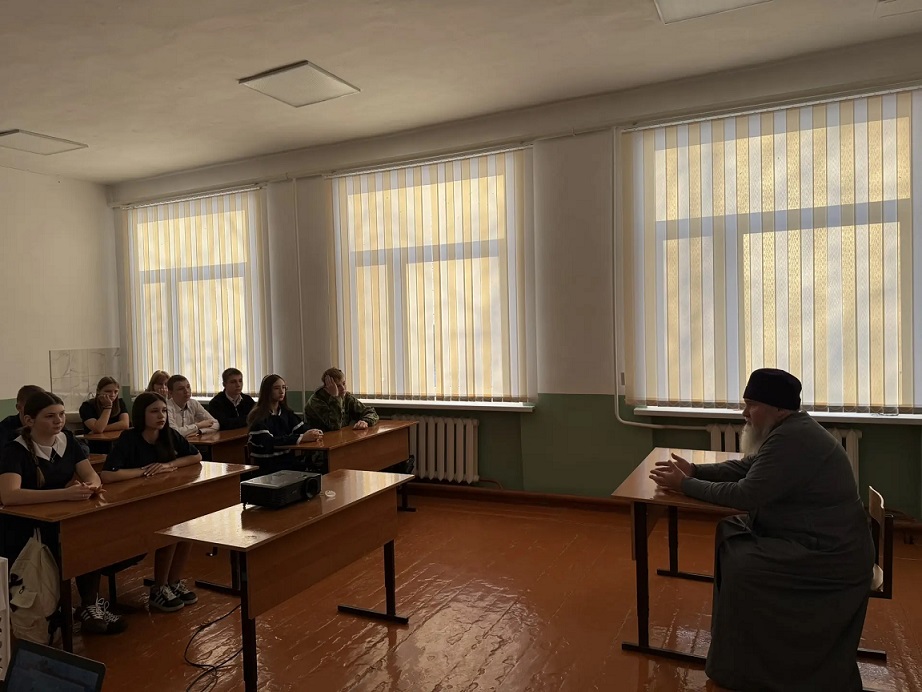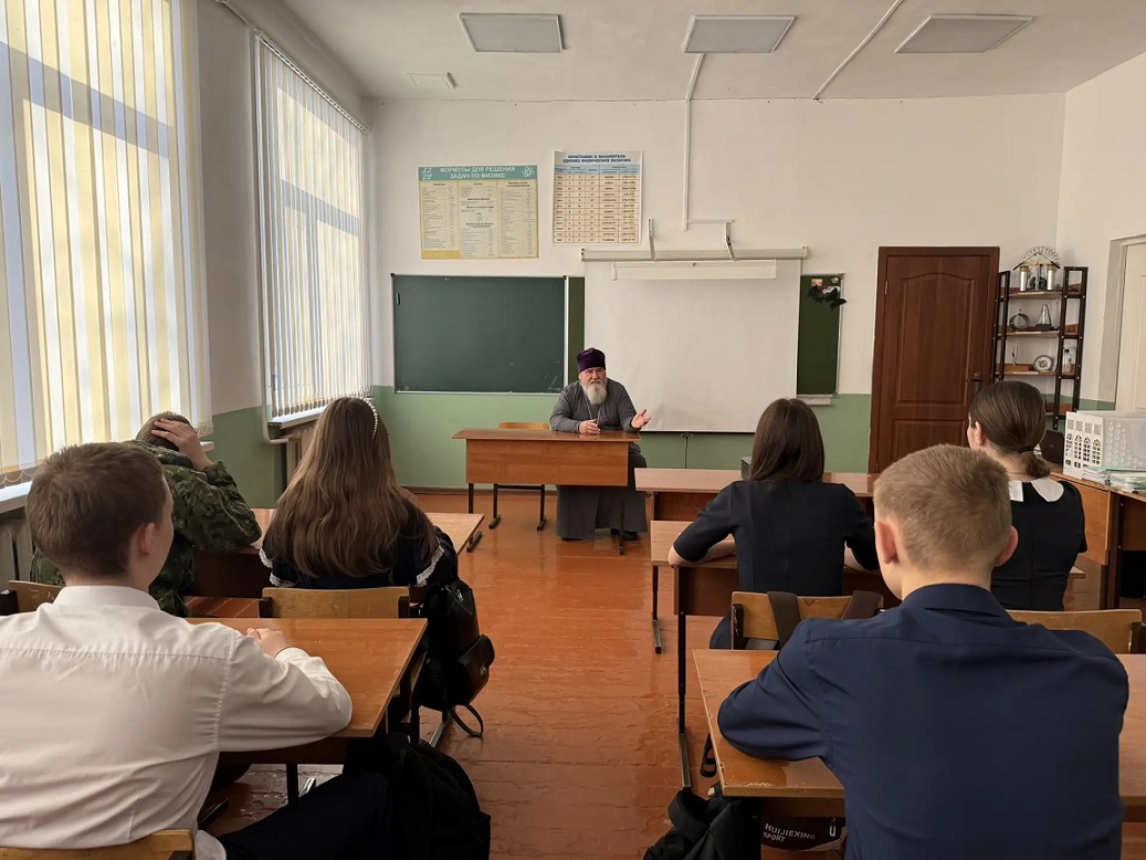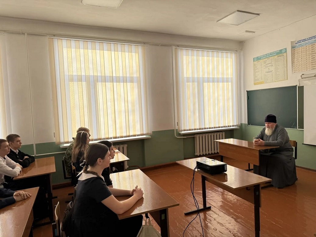 В МБОУ СОШ №9 им. В.С. Кашук хутора Привольный в рамках программы духовно-нравственного воспитания молодёжи состоялся час духовности для учащихся 8 класса. Мероприятие, организованное при поддержке советника директора по воспитанию, провёл настоятель храма Николая Чудотворца протоиерей Анатолий Шахов.