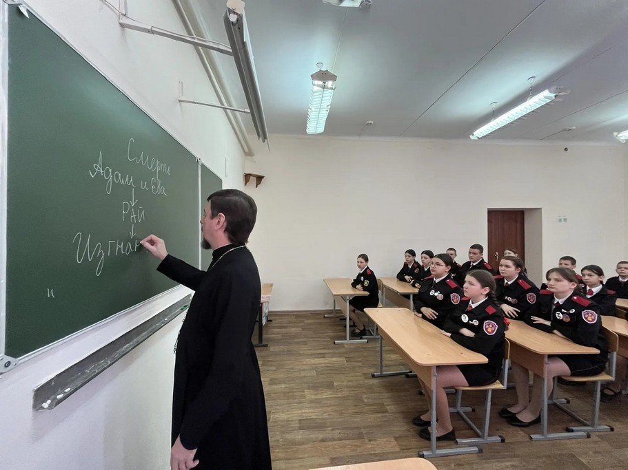 Настоятель Свято-Троицкого храма станицы Казанской провел запланированное занятие в школе №43.