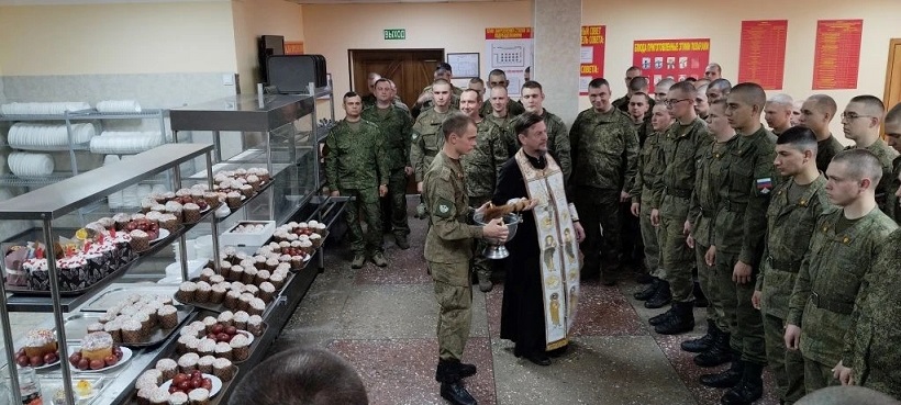 Со словами приветствия и поздравления со Светлым праздником Воскресения Христова обратился к солдатам протоиерей Кассиан Кравцов.